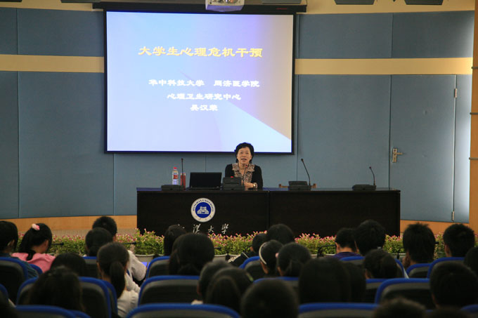 为贯彻落实《中共中央国务院关于进一步加强和改进大学生思想政治教育的意见》(中发[2004]16号)和《教育部 卫生部 共青团中央 关于进一步加强和改进大学生心理健康教育的意见》(教社政[2005]1号)精神,强化学生心理素质教育和心理健康意识,充分发挥班级心理委员的作用,完善我校心理健康教育“三级网络体系”,校党委学工部于10月12日至10月16日在图书馆报告厅举办了为期五天的“2009年心理委员培训班”。09级各班心理委员、校全体学生工作助理和公寓辅导员助理共240余人参加了培训。 校党委副书记王南南教授作《心理健康教育必须正确定位,面向全体学生,立足教育,着眼未来》报告 校心理健康教育中心副主任黄渭副教授正在讲授心理委员职责及如何开展工作 校心理学系副教授、高级心理咨询师严海辉给同学们讲如何调控情绪
