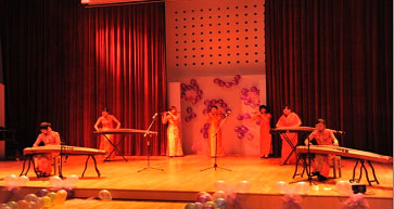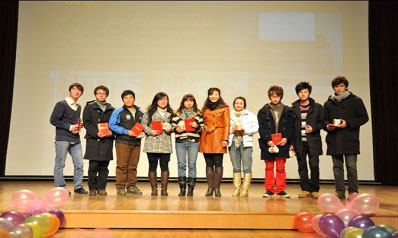 ――艺术学院举行颁奖暨迎新晚会 11月19日,以“灌溉梦想,收获希望”为主题的艺术学院颁奖暨迎新晚会在我院演播厅隆重举行,此次晚会分为颁奖与迎新两个部分。艺术学院党委书记刘晓明老师、副书记张艳老师、学生处熊白莉老师、院学工办李秀萍老师以及全院师生观看演出。 晚上六点半,随着李秀萍老师的致辞,颁奖环节开始。此环节是为上一年度,在各方面表现优秀的班级及个人颁发证书及奖品。主持人介绍着所颁奖项,大屏幕上播放着获奖单位或个人的事迹,声情并茂,给在场每一个人都留下了极深的印象。他们是艺院的骄傲,他们是艺院学子的榜样,激励着我们不断奋进,力争上游。之后,刘书记做总结发言,他说经过此次颁奖,我院定会形成一个比、学、赶、帮的高潮,必会带动我院各项工作的进一步发展;并预祝此次晚会取得圆满的成功! 颁奖环节结束,在李铮乐队的劲爆的歌曲声中,艺术学院迎新晚会拉开帷幕。话剧《应聘》语言幽默、动作夸张,引得台下观众不时爆笑,同时也告诉了我们在竞争激烈的今天如何推销自己;接下来的舞蹈串烧,一位位舞者犹如一个个精灵,在舞台上展现高超的舞技,让观众们叹为观止;舞台剧《成长》,向我们展示了从小学到大学的人生历程,不同年龄段不同的表现方法,将我们带入了回忆的世界,“遥想当年,弹指间……”;京剧《沙家浜》则将我们带入了那个战火纷飞的年代,演员真切的表演,让我们看到了前辈的机智与勇敢,也更加懂得了今天的幸福来之不易; 民乐合奏则将我们带入了优雅的世界,清新的曲风,熟练的配合,一串串音符化为高山流水,寻觅着知音;歌曲串烧又将我们带回现场,一首首耳熟能详的歌曲,让台下观众为之动容,几百根荧光棒伴随着旋律挥动,像繁星在眨着眼睛;女生钢琴弹唱、钢琴独奏,又将我们带入高雅的视听享受中,两位演员精彩的表演,吸引了在场观众静静的聆听;六个男生一台戏,他们带来的《雷人舞》将晚会推向了高潮,雷人的装束、雷人的音乐、雷人的动作,一切都那么雷人,台下的观众被他们雷的前仰后合,笑声响彻整个会场; T台秀《黑玫瑰》,演员们一出场,台下尖叫声不断,09级辅导员孙凯老师也赶来凑热闹,在台上过了把走秀瘾;最后压轴节目是由晚会主创人员集体带来的手语歌《爱因为在心中》,此时此刻,我想说一句,正是你们的辛劳,我们才看到了如此精彩的晚会,你们辛苦了!在这温馨的时刻,大家一起上台庆祝晚会的圆满成功。 这是一台成功的晚会,组织得力,节目精彩纷呈;这是一台和谐的晚会,师生齐聚一堂,分享彼此喜悦;我们努力,我们成功,我们更有理由相信,艺术学院明天会更好!