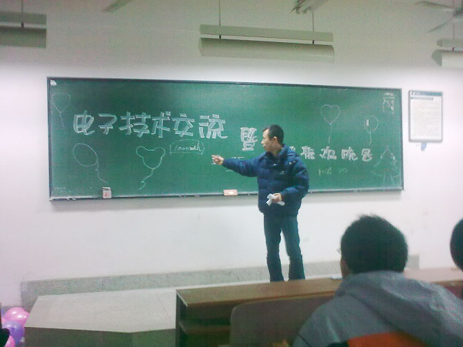 本次的元旦联欢晚会,不同于以往的联欢会,其主题为“电子技术交流暨元旦联欢晚会”,表演几个节目便展开一次以我们现学的《电路理论分析》为基石的知识抢答赛,如此循环,我们御学于乐,玩的不亦乐乎!表演的形式多种多样,有小品、相声、合唱、独唱、弹唱,更有舞蹈!上面同学全身投入,下面的则是阵阵掌声,声声的欢呼,上下其乐融融,一股暖流悄无声息的在人与人之间流动着,亲如手足!