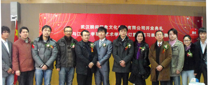 ――江汉大学现代艺术学院与武汉市瞬间印象文化传媒有限公司签订重点实习单位揭牌仪式 12月4日上午,武汉市瞬间印象文化传媒有限公司开业典礼暨与江汉大学现代艺术学院签订重点实习单位揭牌仪式在汉阳高新技术创业中心举行。 到场嘉宾有江汉大学招生就业处叶冰副处长、现代艺术学院宗微副院长、现代艺术学院李瑞洪主任、创业中心负责人以及武汉晚报与长江商报记者等。