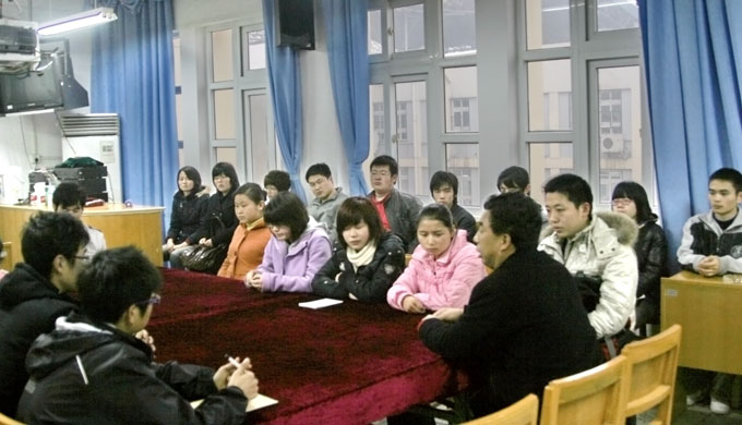 ---教育学院召开座谈会了解学生寒假生活情况 2月25日下午,教育学院在该院会议室召开了09~10学年上学期学生寒假生活交流会,教育学院党委副书记胡承林、院学工办郭焕泉主任作为本次活动的主持人,与来自学院各年级共27名学生代表共济一堂,分享同学们假期生活的奇闻趣事。本次交流会紧紧围绕“假期学生印象最深刻的事”和“最关心的校内外热点问题”两个主题展开,交流会上,亲切的寒暄、即兴的演讲与宽松的氛围相互交融、相得益彰,现场气氛和谐而融洽。 会议最后,胡书记为整场交流会做出了精彩的点评,并对同学们提出了几点希望:希望大家能从这次交流活动中在分享到他人经验的同时看到自身存在的问题,为把自己锻造成为一名真正的有为青年而努力;希望大家明确规划自己的发展路线,为自己的人生确立无悔的目标;希望大家充分挖掘校园得天独厚的网络资源,正确构建自己的人脉网络,真正做到有效利用学校的学习资源;希望大家创新就业观念、摆正就业态度,从个人魄力、独立思考能力以及就业技能储备等各方面锻炼自己、塑造自己,为自己的就业之路打下坚实的基础。