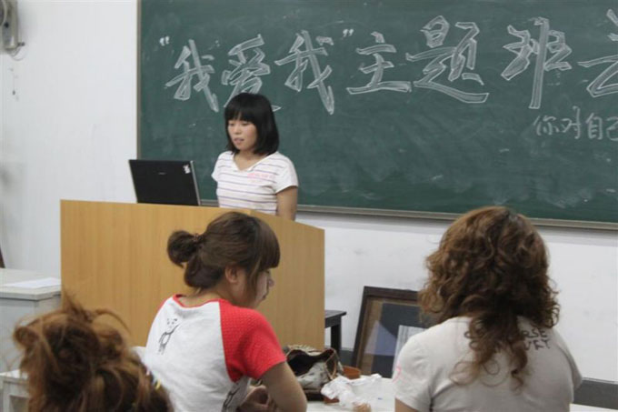 2010年5月26日晚自习,现代艺术学院09平面三班和09绘画班分别在各自自习教室举行了一场具有趣味性又意义深刻的主题班会――“我爱我”心理健康教育主题班会。参加活动的是本班同学,主持班会的是心理委员。 本次班会,同学们都很放的开,通过一年的相处同学之间更加了解,交流也加深了。通过本次的班会也了解到通过一年的大学生活,同学们对未来既充满了向往同时又很迷茫,自己以后的大学生活会怎样,学习会怎样,工作会怎样……希望本次班会可以让同学们认识到要正视自己的缺点,重视自己的优点,全面正确的给自己定位,可以有胜不骄败不累的心态,在以后的大学生活甚至走向社会后有一个很好的心态,展现自己!