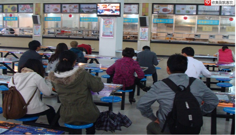 图为我校师生自发在食堂收看开幕式直播。 (朝闻 摄)