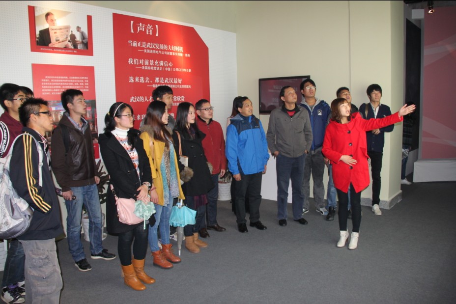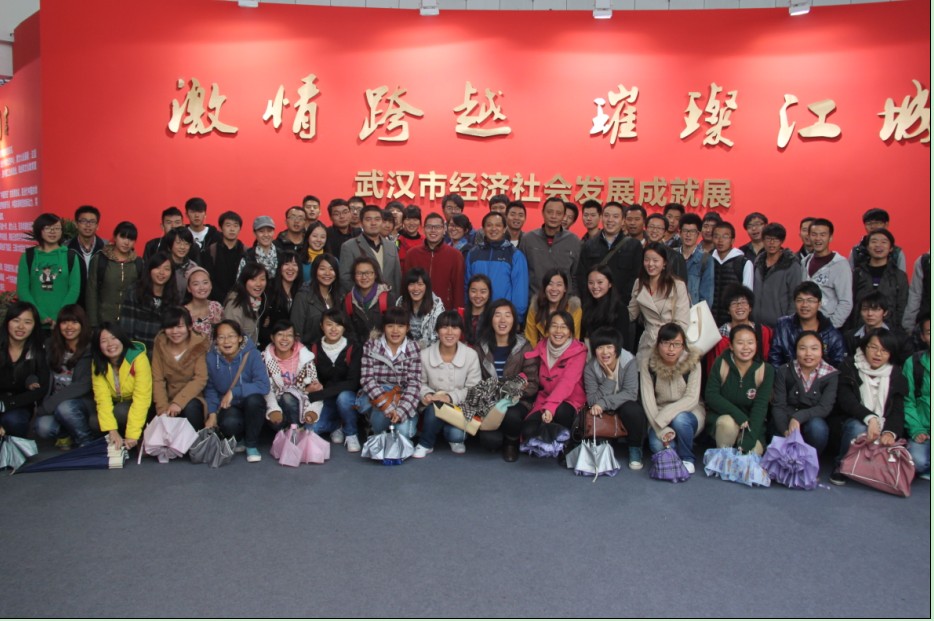 为庆祝党的十八大胜利召开,党委学工部、武装部、团委组织我校部分学生党员、优秀学生干部参观《激情跨越 璀璨武汉――武汉市经济社会成就展》。