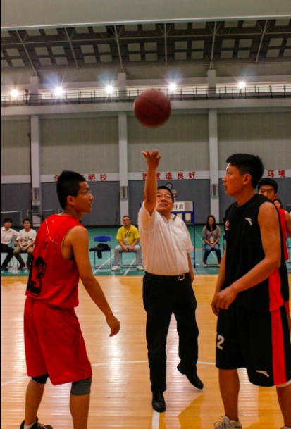 接下来是更为激烈的男子决赛,对阵双方分别为继续教育学院和化学与环境工程学院,杨卫东校长亲自男篮决赛开球。