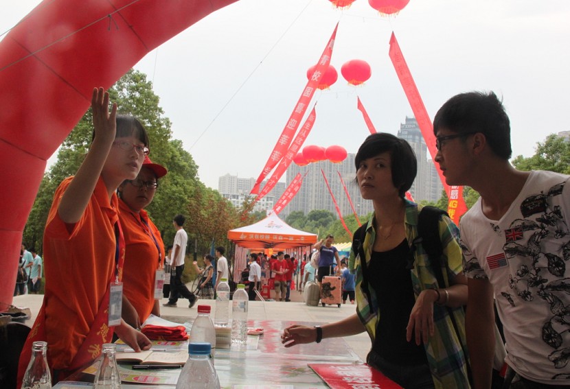 志愿者们为新生热情讲解报到注意事项