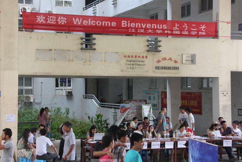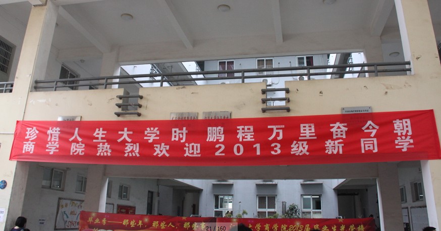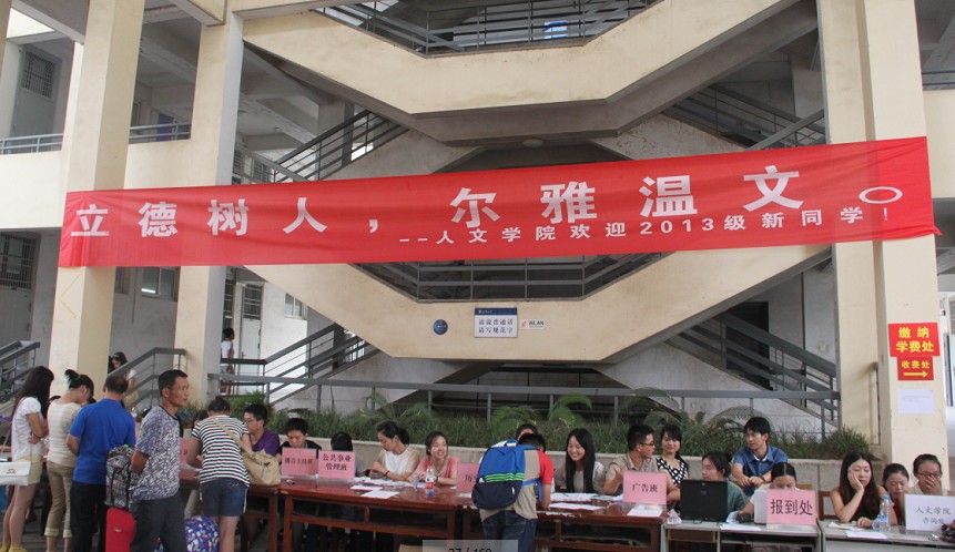 各学院富有特色的迎新横幅让新生眼前一亮