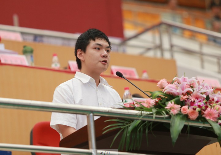 大家上午好!我是来自商学院2010级会计学专业的阮秦南,开学季是孕育新希望的季节。三年前的今天我也和在座的同学们一样,带着兴奋,带着忐忑,憧憬着即将开始的青春旅程。