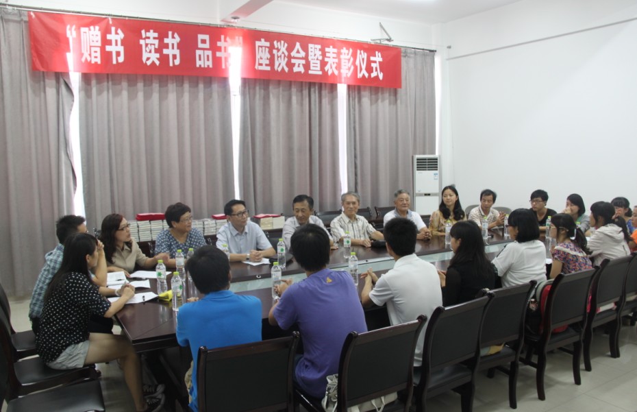 为了更好的加强我校老领导、老教师和青年学生的交流,在老少之间架起一座群众路线的桥梁,10月12日,校关工委、党委学工部、团委在重阳佳节来临之际,共同主办了“赠书读书 品书”座谈会暨表彰仪式。校党委副书记王南南和华定一、安维群二位老领导一起出席座谈,离退休处、学工部、团委领导和我校青年学生代表一起参加了活动,并分享了读书心得。