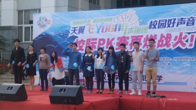 此次比赛在全国各地巡回举行,当日进行的是江汉大学与湖北大学的十强PK赛。PK赛中我校十名学子分别表演了《残酷月光》、《Supersonic》等歌曲作品及《中国话》、《项羽》等朗诵篇目。湖北大学选手表演了《蜀道难》、《好胆你就来》等作品。湖北广播电视台多位知名主持人作为评委对我校选手的表现给予了高度评价,其中游智同学的朗诵《项羽》情感饱满、张弛有度,获得朗诵组最高分9.45分。林雅茜同学演唱的《Supersonic》极具感染力,赢得满堂喝彩,获全场最高分9.65分。最终我校10名选手以团体总分111.59分的佳绩战胜了对手湖北大学。同时,林雅茜同学成功进入个人决赛并有望代表湖北高校参加第三季中国好声音的比赛。