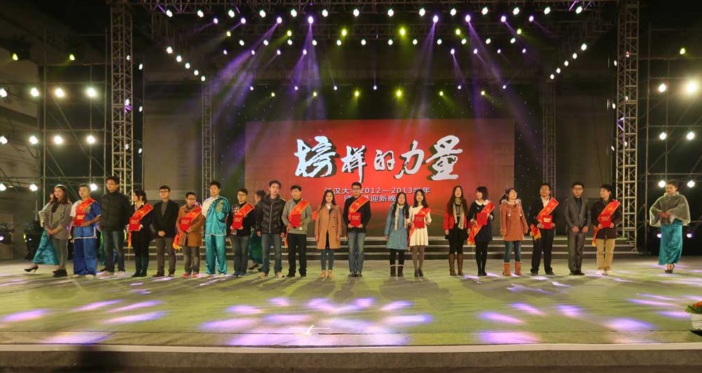 | 12月26日晚,江汉大学2012-2013学年度“榜样的力量”颁奖暨迎新晚会在体育馆隆重举行。我校全体领导,各学院、各职能部门领导与学校近3000名师生一起,以中国梦、江大情、感恩心三个关键词总结了这一年的收获和喜悦,一起见证榜样的风采,迎接新年的到来。 今年,我校共有10人荣获校长奖学金,47人荣获国家奖学金;16人获校优秀学生标兵称号,261人获校优秀学生干部荣誉称号,21个班集体获优秀班集体荣誉称号;19个班集体获优良学风班荣誉称号;另有3886人分别荣获校优秀学生奖学金一、二、三等奖,980人获得精神文明奖等单项奖学金;还有十佳团队、十佳班主任和十佳辅导员等获得表彰。校党委书记谭仁杰在致辞中,向本年度所有获奖的集体与个人表示最热烈的祝贺,向一年来辛勤耕耘的师生员工表示了最诚挚的敬意! 校党委副书记王南南宣读表彰决定。历届国家奖学金、十佳社团、十佳班主任、十佳辅导员等荣誉获得者分别为本年度获得获奖集体和个人颁奖。 今年“榜样的力量”颁奖暨迎新晚会一共分为三个篇章,分别由“中国梦”、“江大情”、“感恩心”编织而成,每个环节特色鲜明,共同谱写了一首璀璨的榜样之歌。 中国梦 奏响江大最强音 音乐学院合唱团带来的合唱《国家》与《八骏图》拉开“中国梦”篇章的序幕。在这一篇章中,表彰了我校47名品学兼优的国家奖学金获得者,他们中有许多同学在国内外、以及省市各级各类比赛中取得了优异的成绩。由全国体操冠军徐亮等参演的青春串烧《舞动江大》,为大家呈现了一个融合体操、体育舞蹈、武术、双截棍等元素的青春校园,热力四射表演令观众耳目一新。 江大情 感悟母校最真情 这一篇章中,校长杨卫东为本年度十位荣获“校长奖学金”的同学进行了颁奖,“寒门学子有大志,学科竞赛创历史”的余家伟,“坚持不懈创业心,梦想起航巨众星”的左周,“创新实践新媒体,团队合作攀新高”的刘瑞等10位校长奖学金获得者在掌声中依次登台亮相……特色鲜明,能力突出的获奖者,接受了这份最能体现江大情的奖项。“十佳社团”奖项也在本篇章颁发,近年来,我校社团活动在不断发展壮大的同时,也取得了卓越的成绩,这些获奖的社团中,有获得湖北省十佳公益组织称号的校青年志愿者协会,有在国内外比赛中屡获大奖的ERP沙盘协会、“源动力”科研创新社等。我校外国留学生还和他们的中国好朋友一起,以一支柔美袅娜的水袖舞《贵妃醉酒》表达了国际化的江大情。国家一级演员、魔数大师吴松涛和女儿联袂演出的魔术《变幻莫测》在让观众在榜样的力量舞台上感受到神奇的魔力。 感恩心 聆听四海爱校情 江大声音唱响世界,在江大一批批优秀的人才中,有很多已经走出国门,走向世界,感恩心篇章开始,现场观众一起在通过视频聆听了来自世界各地的江大声音,爱校之情、思念之意、感恩之心油然而生。由全国道德模范、江汉大学学生成长导 硕果累累的2013年渐行渐远,充满希望的2014年即将到来。“应用性、创新性、国际性”的目标将会继续成为江大学生走向成功的行动指南,“榜样的力量”将会成为江大学子追求青春梦想的不懈动力。继续高扬中国梦的伟大旗帜,继续珍藏真挚动人的江大情,继续怀揣不懈努力的感恩心,用感恩之心描绘江大之情、用江大之情创造中国之梦! 据悉,“榜样的力量”主题文化教育活动已成为我校校园文化建设的重要品牌,近日已荣获教育部第七届高校校园文化建设优秀成果三等奖和2013年湖北省高校校园文化建设优秀成果二等奖。