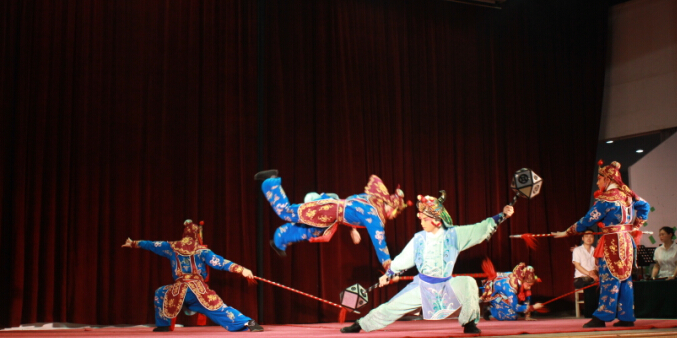 首先上演的是《白蛇传・游湖》,描写了许仙白娘子在断桥相遇的情景,精彩的情节和精湛的演技获得了观众们热烈的掌声。第二部戏是由谈元、尹章旭两位国家一级演员带来《访鼠测字》,通过对戏中人物娄阿鼠心理的准确刻画,一个做贼心虚、惊惶不安的无赖形象生动展现在观众眼前,引来叫好声一片。《赤桑镇》中花脸和老旦的对戏,表现出一个刚正不阿又重情重义的包公形象。最后演出的是《泗州城》,演员们一系列精彩的武打动作将全场气氛推向高潮,掌声和叫好声此起彼伏。