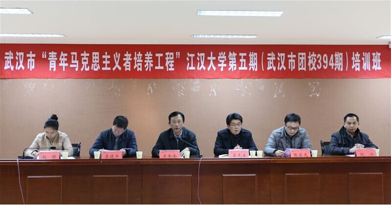 开班典礼在全体师生齐唱《团歌》声中开始。王南南书记和李先勇书记先后发表了讲话。王书记强调,在广大青年学生中着力培养造就一大批用马克思主义中国化的最新成果武装的马克思主义者,是高校义不容辞的责任。他希望,全体参训学员要加强对自己的严格要求,以矢志不渝的追求努力成长为一名坚定的马克思主义者;要以谦虚好学的态度完成本次学习任务,努力做到认识上有提高、思想上有进步,理论上有收获,成为真学、真懂、真信、真用马克思主义的表率;要将“敢为人先追求卓越”的武汉精神内化于心,外化于行,使社会主义核心价值观成为自己的基本遵循,以实际行动和成效引导广大团员青年参与到武汉市文明城市创建工作中去。李书记作为一名江汉大学毕业校友,衷心寄语全体学员,他希望大家高度认识举办本次培训班的重要意义,把参加“青年马克思主义者培养工程”作为一种荣耀,并努力让这种特殊经历在个人的成长中留下深刻的印记。他指出,全体学员要想成长为一名青年马克思主义者,必须要有坚定的信仰,要始终保持积极的态度,在学习成长的过程中,克服懒惰、散漫等弱点,在学习之余深入思考、广泛实践;要学会自省自立、懂得感恩、心存感激、善待他人,从身边做起,从点滴做起,以实际行动不断完善自身的发展。