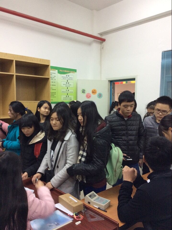 12月3日,师生活动中心106的学生火车票优惠卡办理点人气爆棚,前来办卡的同学们从门里一直排到了门外大厅。学生处资助管理中心的老师和换客互助协会的同学们忙前忙后,现场为同学们倾情服务,首日办理人数即突破200人。